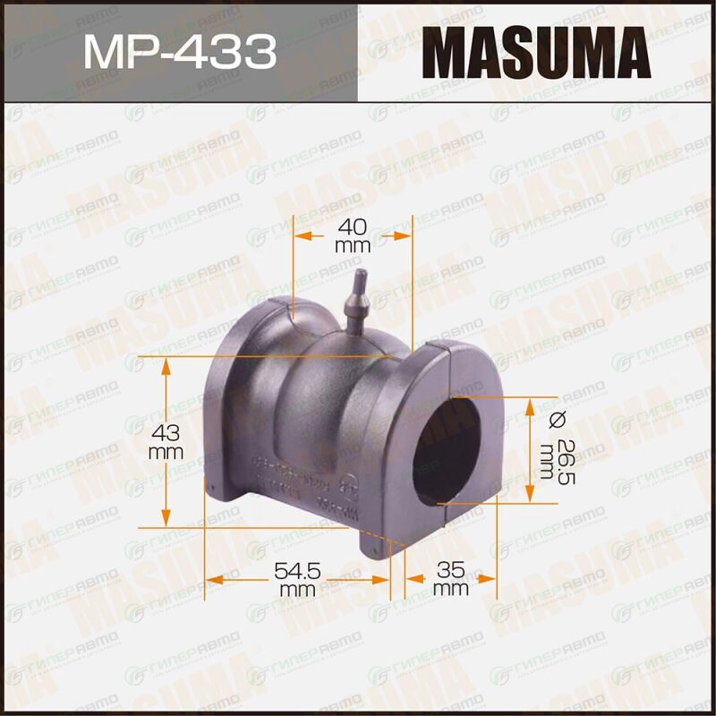 Вы можете купить втулка стабилизатора masuma, арт. mp-433 в интернет-магазине втулок подвески Гиперавто. Цена на MASUMA MP-433, описание, характеристики и фотографии.