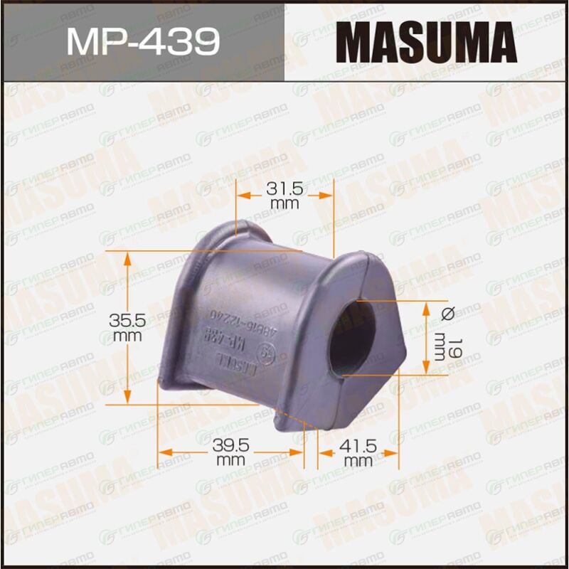 Вы можете купить втулка стабилизатора masuma, арт. mp-439 в интернет-магазине втулок подвески Гиперавто. Цена на MASUMA MP-439, описание, характеристики и фотографии.