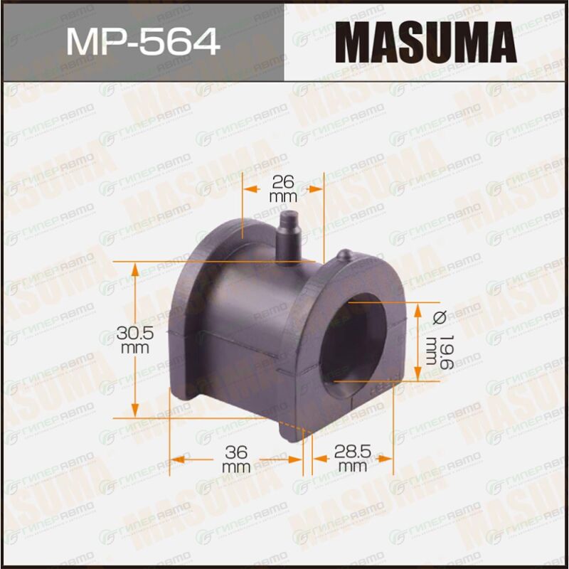 Вы можете купить втулка стабилизатора masuma, арт. mp-564 в интернет-магазине втулок подвески Гиперавто. Цена на MASUMA MP-564, описание, характеристики и фотографии.