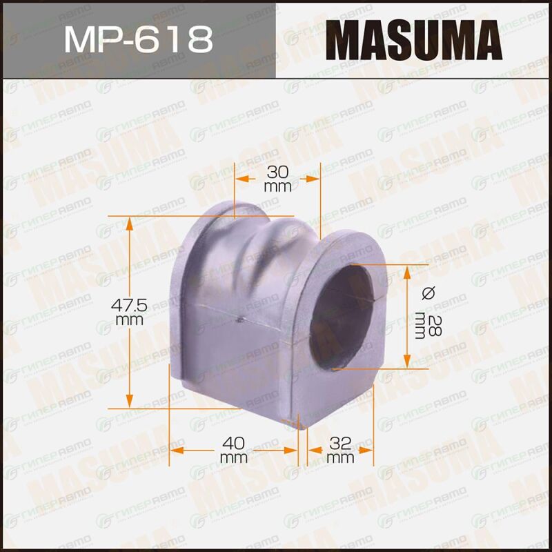 Вы можете купить втулка стабилизатора masuma, арт. mp-618 в интернет-магазине втулок подвески Гиперавто. Цена на MASUMA MP-618, описание, характеристики и фотографии.