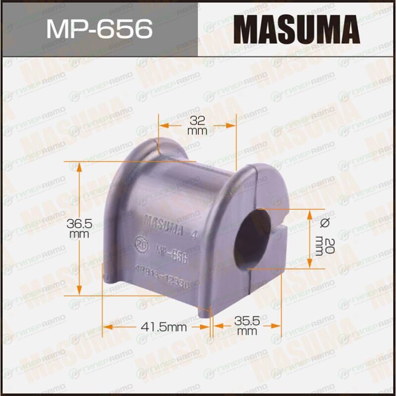 Вы можете купить втулка стабилизатора masuma, арт. mp-656 в интернет-магазине втулок подвески Гиперавто. Цена на MASUMA MP-656, описание, характеристики и фотографии.