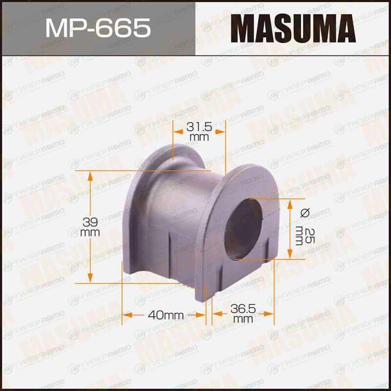 Вы можете купить втулка стабилизатора masuma, арт. mp-665 в интернет-магазине втулок подвески Гиперавто. Цена на MASUMA MP-665, описание, характеристики и фотографии.