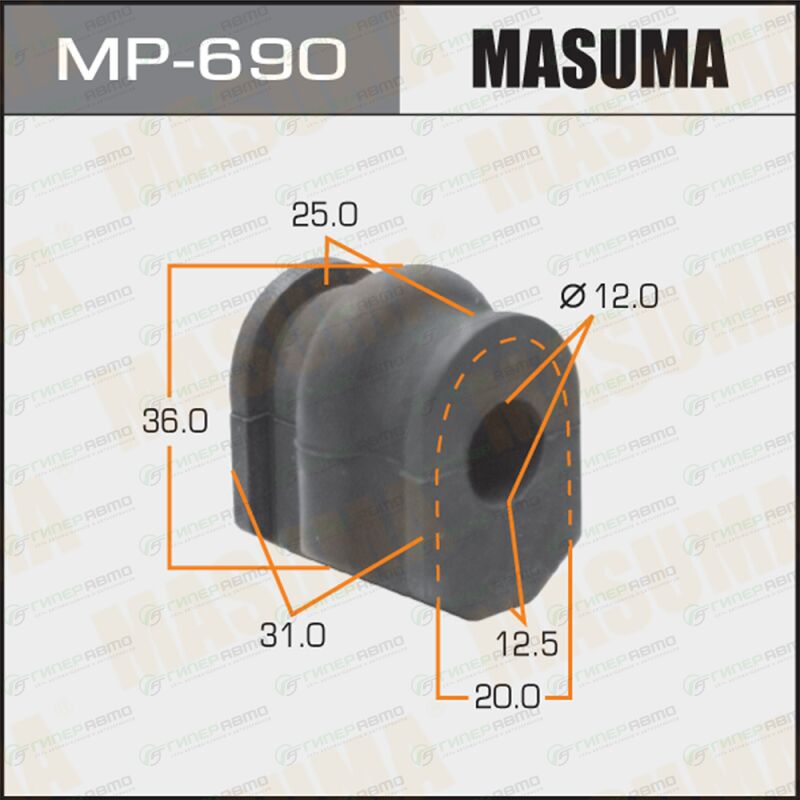 Вы можете купить втулка стабилизатора masuma, арт. mp-690 в интернет-магазине втулок подвески Гиперавто. Цена на MASUMA MP-690, описание, характеристики и фотографии.
