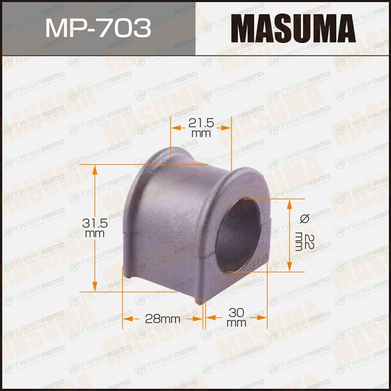 Вы можете купить втулка стабилизатора masuma, арт. mp-703 в интернет-магазине втулок подвески Гиперавто. Цена на MASUMA MP-703, описание, характеристики и фотографии.
