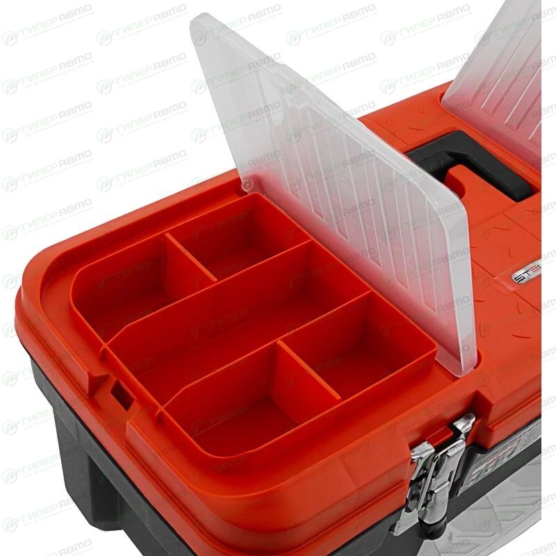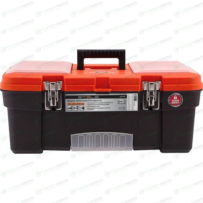 Ящик для инструмента с металлическими замками Stels альтернатива коробке для инструментов. В нем можно расположить ручной инструмент, крепежи, хозяйственные мелочи, а также рыболовные снасти. В крышке имеются встроенные органайзеры, на дне — выкидной лоток с отсеками для мелких деталей, что увеличивает функциональность ящика.