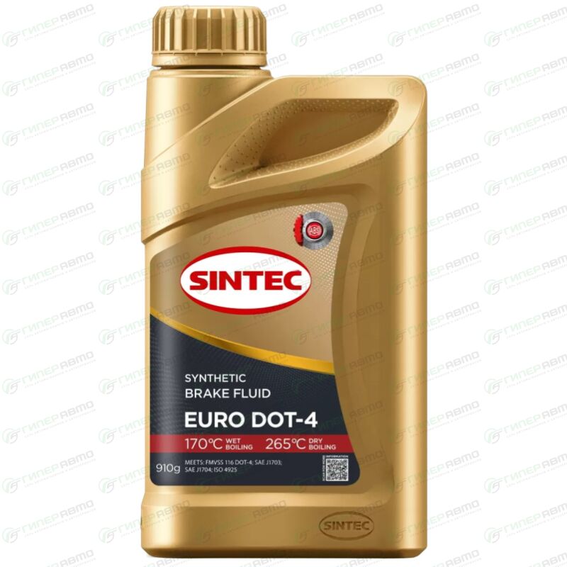 Sintec Euro DOT-4 — тормозная жидкость на полигликолевой основе. Благодаря высокой температуре кипения «сухой» (не менее +255 °С) и «увлажненной» (не менее +165 °С) жидкости обеспечивает высокую эффективность торможения на протяжении всего срока применения. Работоспособна при температуре окружающего воздуха от -40 до +50°С. Не смешивается с силиконовыми (DOT 5.0) и минеральными (типа LHM) жидкостями. Нейтральна к резинотехническим и полимерным материалам. Не оказывает отрицательного воздействия на детали тормозной системы и обладает высокой термической стабильностью. Совместима со всеми качественными тормозными жидкостями классов DOT-3 и DOT-4.