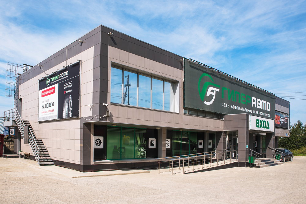 Все магазины Гиперавто оформлены в современном стиле с открытой выкладкой товаров.